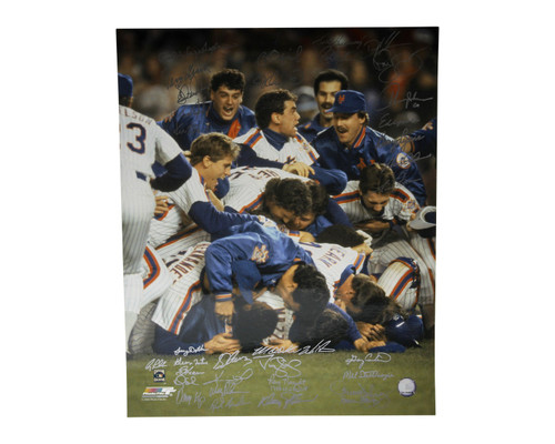 1986 New York Mets New York Mets Autographed 16x20 Photo has been authenticated by Prime One Sports and ships complete with a tamper-proof sticker and matching Certificate of Authenticity. Autographs include: Ron Darling, Sid Fernandez, Dwight Gooden, Bob Ojeda, Wally Backman, Keith Hernandez, Ray Knight, Lenny Dykstra, Darryl Strawberry, Davey Johnson and Mel Stottlemyre. The certification number can be verified online. 16x20 photographs ship securely in a plastic 16x20 toploader to avoid dings and scratches. 1986 New York Mets hand signed this glossy 16 x 20 photograph. Relive the best moments in New York Mets history with an autographed collectible from star player, 1986 New York Mets. Step up your New York Mets man cave with this authentic signed photograph. Purchase this autographed picture with confidence as it is backed by Prime One Sports 100% money back guarantee. Add an authentic 1986 New York Mets Signed 16x20 Photo New York Mets World Series Champs to your memorabilia collection today.