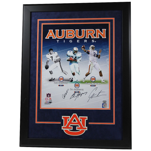 This Auburn Tigers Autographed 3 Heisman Framed 16x20 Photo with Cam Newton, Pat Sullivan, and Bo Jackson - Fanatics Authentic is an Amazing Piece of Memorabilia for any Bo Jackson Fan or Collector in Your Life! Shop with Confidence knowing your Bo Jackson Autographed Framed Photo is Authenticated by Fanatics and the Certificate of Authenticity Included with Your Purchase! This Bo Jackson Auburn Tigers Autographed Framed Photo Measures 25.5x134 and would Look Amazing in any Fan-Cave or Sports Room! Items Sell Fast, So Be Sure to get Your Order in as Soon as Possible!