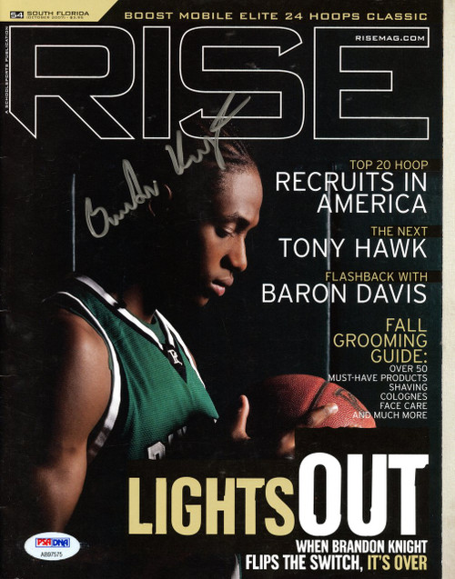 Brandon Knight autographed photos are a must have for any Phoenix Suns man cave, home or office. This 8x10 photo has been authenticated by PSA/DNA and comes complete with a Certificate of Authenticity (COA) and tamper-evident sticker. The unique Certificate Number can be verified online. This glossy 8x10 photo ships securely in an 8x10 plastic toploader for protection. Relive the moments in Phoenix Suns history with an iconic shot signed by Brandon Knight. Shop with confidence as this Brandon Knight signature is 100% authentic and backed by Prime One Sports 100% Money Back Guarantee. Prime One Sports is your one stop shop for certified Brandon Knight and Phoenix Suns signed sports memorabilia. Items ships same day.