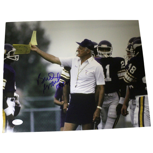 Bud Grant signed items are top sellers among sports memorabilia. This Bud Grant Autographed 11x14 Photo Minnesota Vikings - JSA Authentic comes fully certified by JSA and will come with COA and matching sticker. This Bud Grant signature is very bold and will not fade over time. Signed Minnesota Vikings Prime One Sports hold their value for generations. Start your Bud Grant memorabilia collection today. Your order ships out same day.