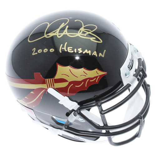Chris Weinke signed Autographed Mini Helmets is the missing piece to any Florida State Seminoles sports room, man cave, home or office. Check out this Chris Weinke Florida State Seminoles Autographed Schutt Black Mini Helmet with 2000 Heisman Inscription - PSA/DNA Authentic, perfect for display! This Chris Weinke signature has been authenticated by industry leader, PSA/DNA and comes complete with a Certificate of Authenticity (COA) and matching tamper-evident sticker. PSA/DNA was on site during a public signing at WestShore Plaza in Tampa on July 15, 2017 to witness each signature from the 2000 Heisman Trophy winning QB. Prime One Sports is an online leader in authentic Florida State Seminoles autographed sports memorabilia, including Weinke, Dalvin Cook, Jameis Winston, Bobby Bowden, Jimbo Fisher, Derrick Brooks, and more. Shop with complete confidence as this Chris Weinke autograph is 100% authentic. Your order ships out same day. FSU fans and collectors can't miss out on this Chris Weinke signed Florida State Seminoles black mini helmet!