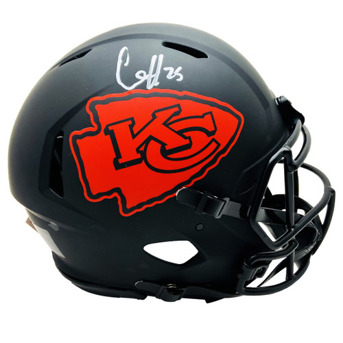 This Clyde Edwards-Helaire Autographed Kansas City Chiefs Authentic Full Size Riddell Speed ECLIPSE Black Helmet - Beckett Authentic is an Excellent Piece of Sports Memorabilia for any Kansas City Chiefs Fan or Collector in Your Life! Clyde Edwards-Helaire is a Sensation for the Chiefs! Clyde signed this Full Size Helmet boldly in a White Paint pen! His Autographs are some of the hottest in the NFL! Shop with Confidence knowing your Clyde Edwards-Helaire Autograph is Authenticated by Beckett and the Certificate of Authenticity Included with Your Purchase! Items Ship Quickly and Securely!