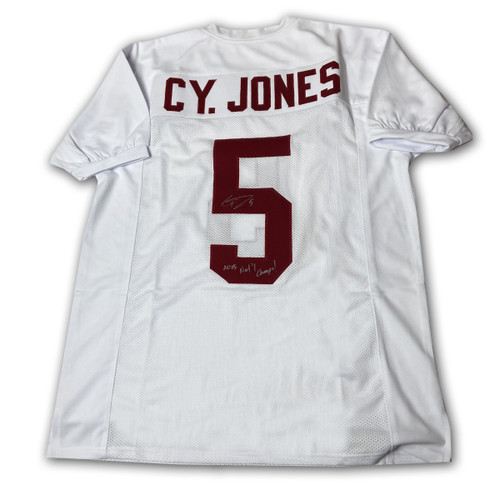 This Cyrus Jones Autographed Alabama Crimson Tide Custom Prostyle Jersey - White Jersey with 2015 National Champs Autograph comes with a Certificate of Authenticity from Seller. The product has been personally hand-signed by Cyrus Jones. Prime One Sports is an online leader in authentic Cyrus Jones signed memorabilia. Add a unique signature to your Alabama Crimson Tide Collectible collection. Order ships out within 1-2 business days.