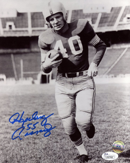 Hopalong Cassady autographed photos are a must have for any Ohio State Buckeyes man cave, home or office. This 8x10 photo has been authenticated by JSA and comes complete with a Certificate of Authenticity (COA) and tamper-evident sticker. The unique Certificate Number can be verified online. This glossy 8x10 photo ships securely in an 8x10 plastic toploader for protection. Relive the moments in Ohio State Buckeyes history with an iconic shot signed by Hopalong Cassady. Shop with confidence as this Hopalong Cassady signature is 100% authentic and backed by Prime One Sports 100% Money Back Guarantee. Prime One Sports is your one stop shop for certified Hopalong Cassady and Ohio State Buckeyes signed sports memorabilia. Items ships same day.