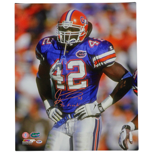 This Jevon Kearse Autographed Florida Gators Stretched Hands on Hips 20x24 Canvas with The Freak! Inscription Signed in Orange - PSA/DNA Authentic is an Amazing Piece of Memorabilia for any Jevon Kearse Fan or Collector in Your Life! Shop with Confidence knowing your Jevon Kearse Autographed Framed Photo is Authenticated by PSA/DNA and the Certificate of Authenticity Included with Your Purchase! This Jevon Kearse Florida Gators Autographed Stretched Canvas Measures 20x1.5x24 and would Look Amazing in any Fan-Cave or Sports Room! Items Sell Fast, So Be Sure to get Your Order in as Soon as Possible!