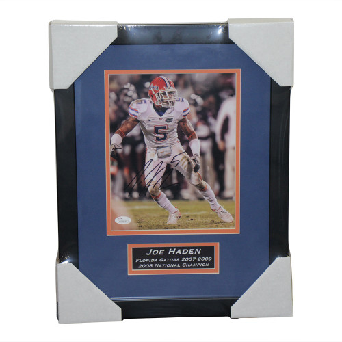 This Joe Haden Florida Gators Autographed Signed Framed 8x10 Photo White Jersey with Nameplate - JSA Authentic is an Amazing Piece of Memorabilia for any Joe Haden Fan or Collector in Your Life! Shop with Confidence knowing your Joe Haden Autographed Framed Photo is Authenticated by JSA and the Certificate of Authenticity Included with Your Purchase! This Joe Haden Florida Gators Autographed Framed Photo Measures 14x1x18 and would Look Amazing in any Fan-Cave or Sports Room! Items Sell Fast, So Be Sure to get Your Order in as Soon as Possible!