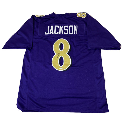 This Lamar Jackson Autographed Signed Baltimore Ravens Purple Color Rush Custom Jersey - JSA Authentic is an Excellent Piece of Sports Memorabilia for any Lamar Jackson Fan or Collector in Your Life! Shop with Confidence knowing your Lamar Jackson Autograph is Authenticated by JSA and the Certificate of Authenticity Included with Your Purchase! Items Ship Quickly and Securely!