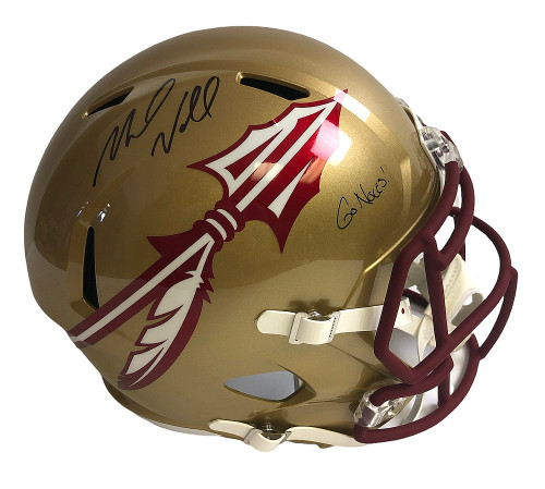 This Mike Norvell Autographed Florida State Seminoles Riddell Full Size Speed Replica Helmet with Go Noles! Inscription - JSA Authentic is an Excellent Piece of Sports Memorabilia for any Mike Norvell Fan or Collector in Your Life! Shop with Confidence knowing your Mike Norvell Autograph is Authenticated by JSA and the Certificate of Authenticity is Included with Your Purchase! Items Ship Quickly and Securely!
